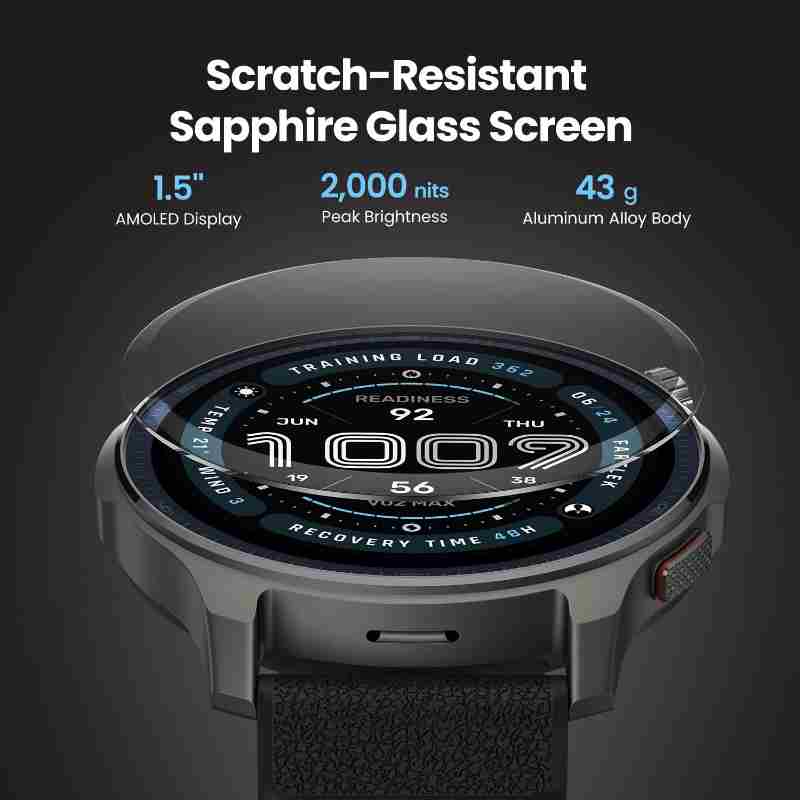 • Built for Performance and Style: The sleek aluminum body and 1.5″ durable sapphire crystal glass screen of the Balance 2 smart watch offer a premium, resilient design, while dual speakers provide clear audio cues during training.