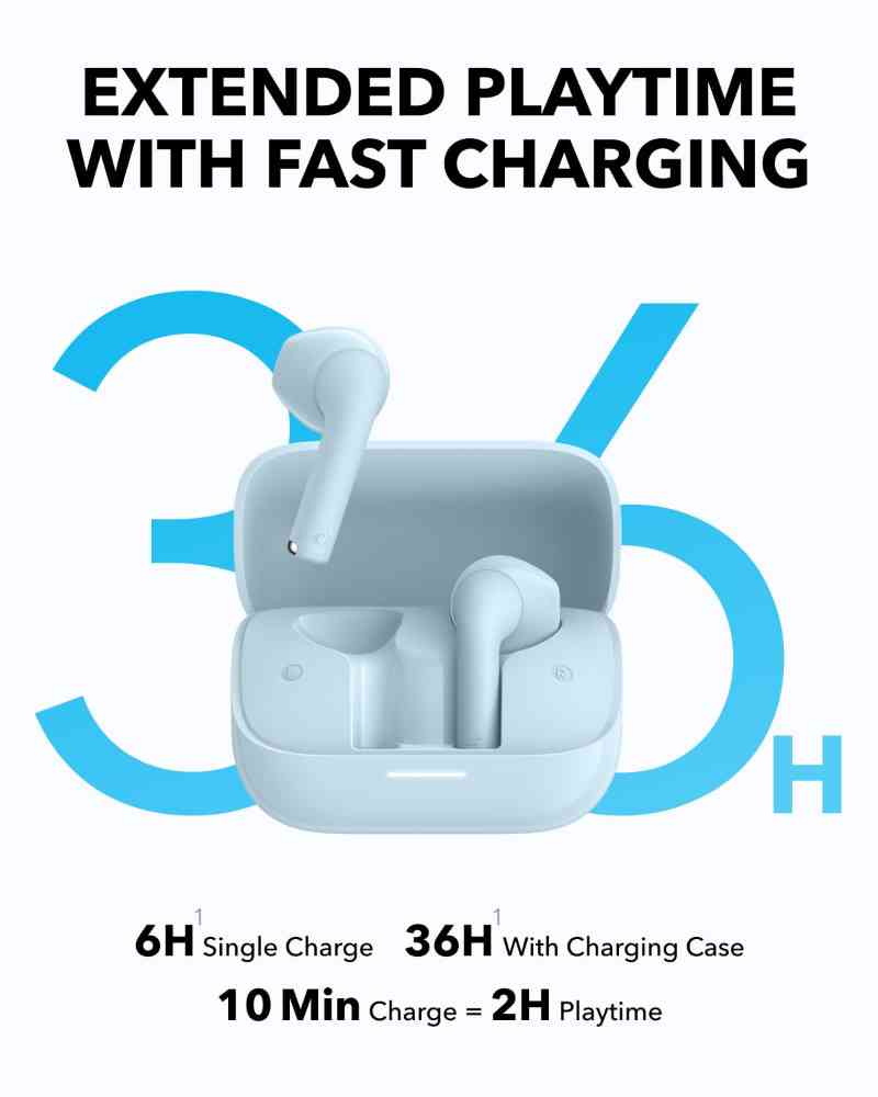 • Extended Playtime: Enjoy up to 36 hours of music with Soundcore K20i’s charging case. A quick 10-minute charge gifts you an additional 2 hours of playback, so you’re always ready to dive into sound, anytime, anywhere.