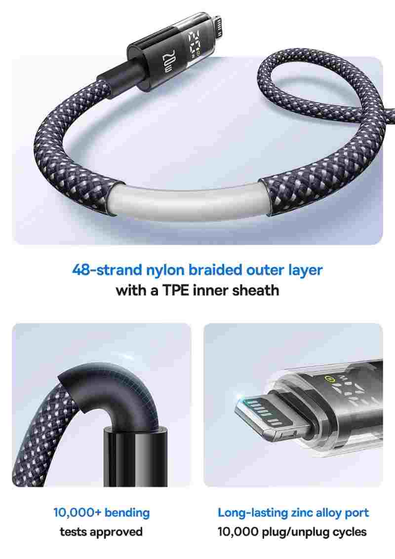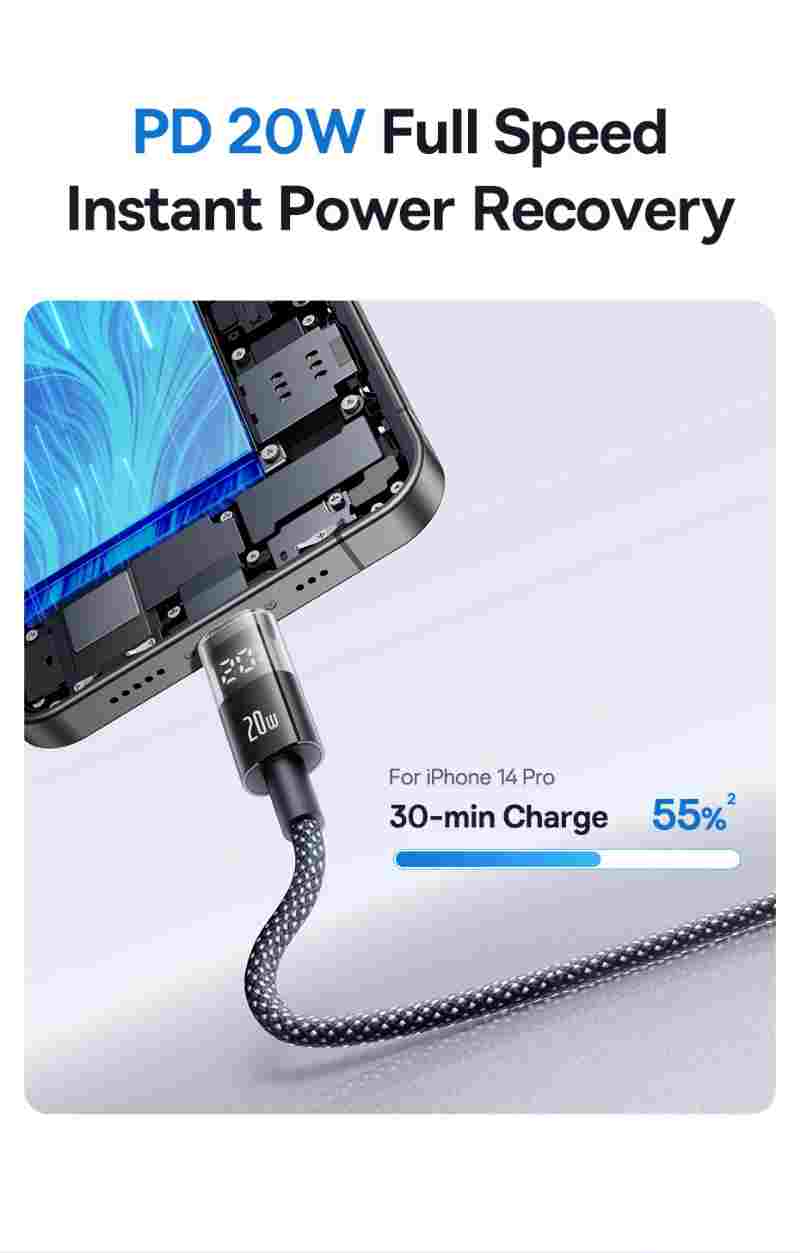 Product Name: Baseus Display 2 PD 20W USB-C To iP Fast Charging Data Cable