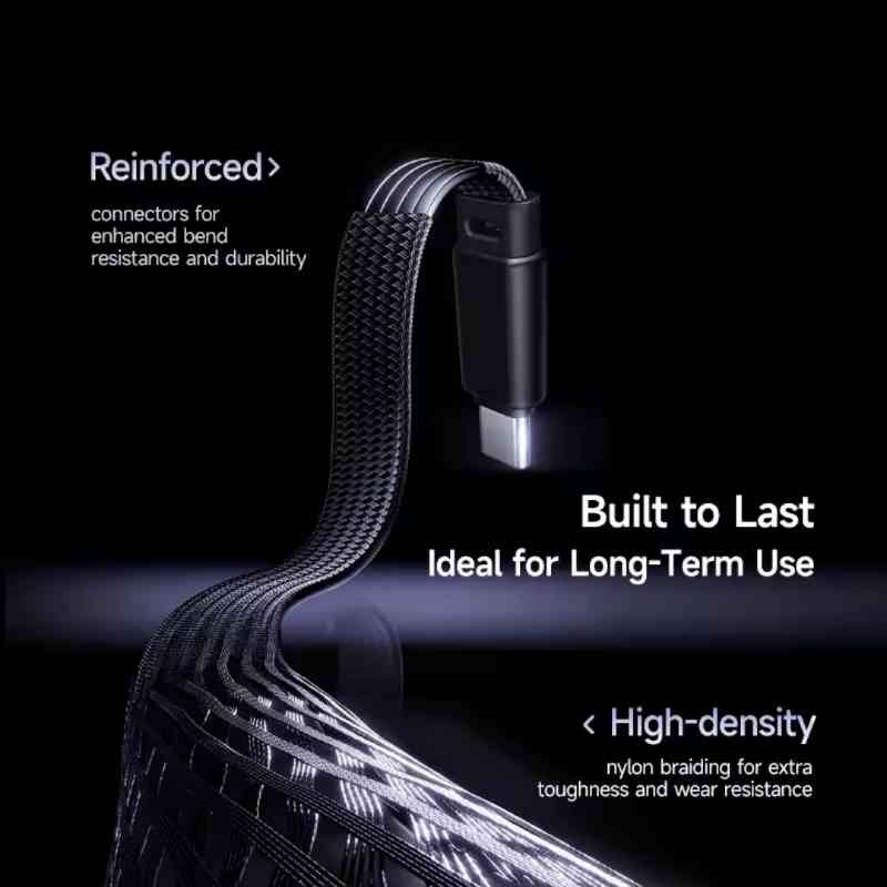 • Long-lating Design: Made with high-quality PC and nylon braided material, the cable is sturdy and long-lasting.