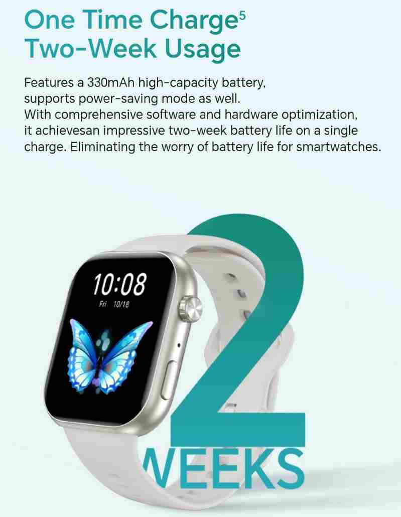 Battery Life: 14 Days (Typical usage); 10 Days (Heavy usage); 5 Days (AOD mode)