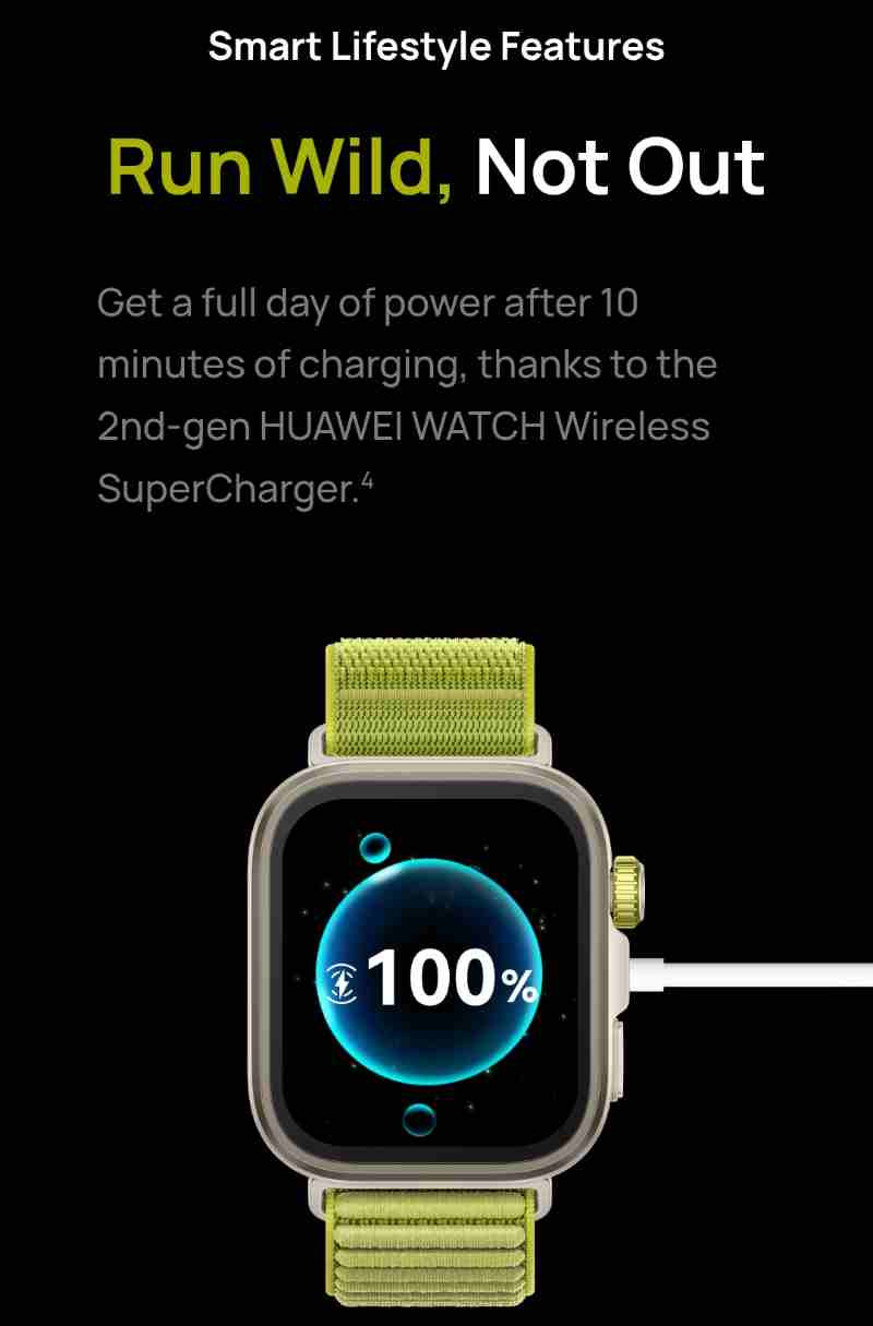 • Up to 10-day Battery Life: Get a full day of power after 10 minutes of charging, thanks to the 2nd-gen HUAWEI WATCH Wireless SuperCharger