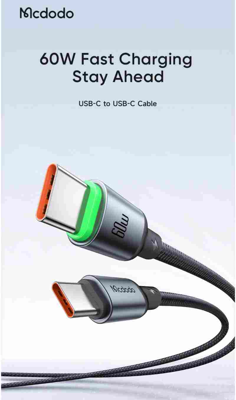 Product Name: Mcdodo CA-687 Cab Luma 60W USB-C To USB-C Cable With Led Charging Light