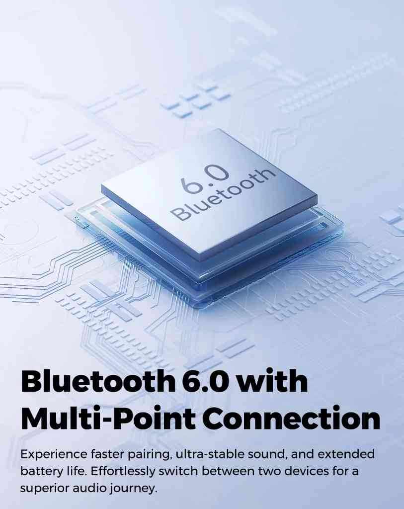 • Pure Listening with Advanced Hybrid Active Noise Cancellation: Dive into your audio world with Feedforward Active Noise Cancellation (ANC) that reduces ambient noise by up to -38dB. Whether you’re on a noisy commute or in a busy office, enjoy unparalleled focus and immersion. The latest Bluetooth 6.0 ensures a rock-solid, low-energy connection for uninterrupted listening.